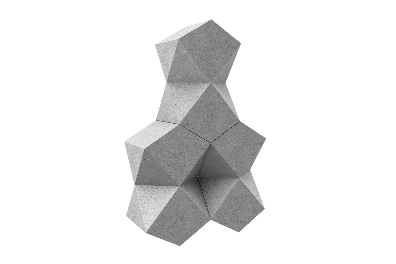 La sua forma unica e sfaccettata ne consente l’accoppiamento in svariati modi per generare assemblaggi poliedrici e stilisticamente creativi. In questo contesto gli elementi in pietra sono assemblati come parete divisoria. Le sue possibilità realizzative possono essere molteplici; riducendone scala e cambiando materia prima come legno o plastica può diventare un “mattoncino” per i giochi creativi dei più piccini.