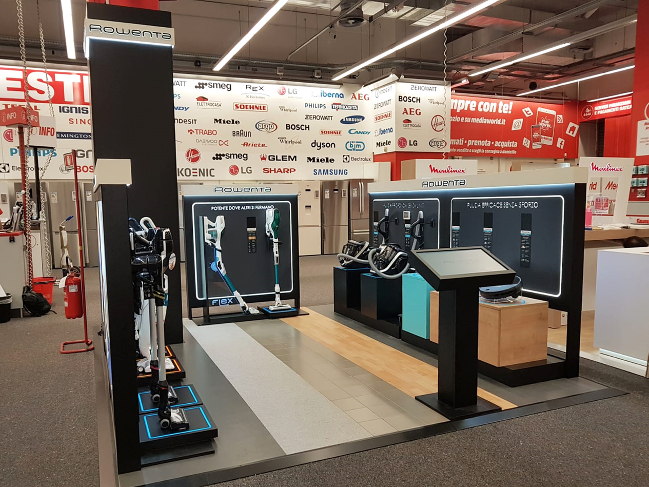 Allestimento di un’area “brandizzata” Rowenta all’interno di Mediaworld Roma 4 e in altri megastore del territorio nazionale.